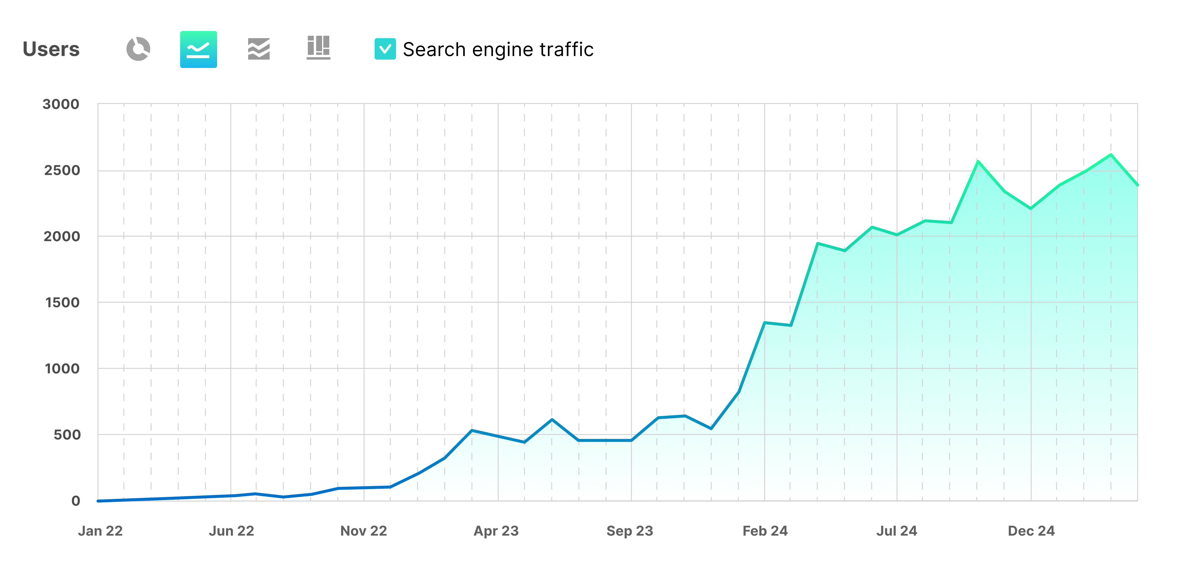 Aquí mostramos ejemplos del crecimiento de varios sitios creados con la CMS de ELNIQ mediante SEO manual.